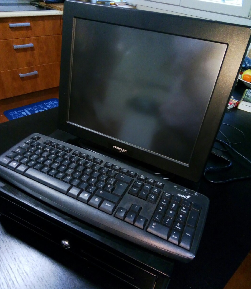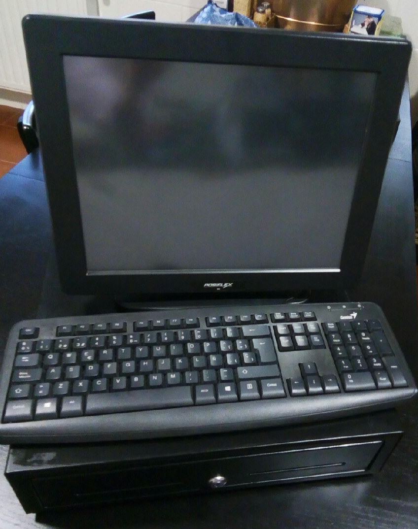 TPV TÁCTIL marca POSIFLEX, modelo monitor de 15", cajón portamonedas, teclado e impresora tickets de la misma marca. Con windows instalado. No tiene programa, por que trabajábamos con un programa en nube. Solo un año de uso. Está en perfectas condiciones. Precio nuevo, más de 900 euros.